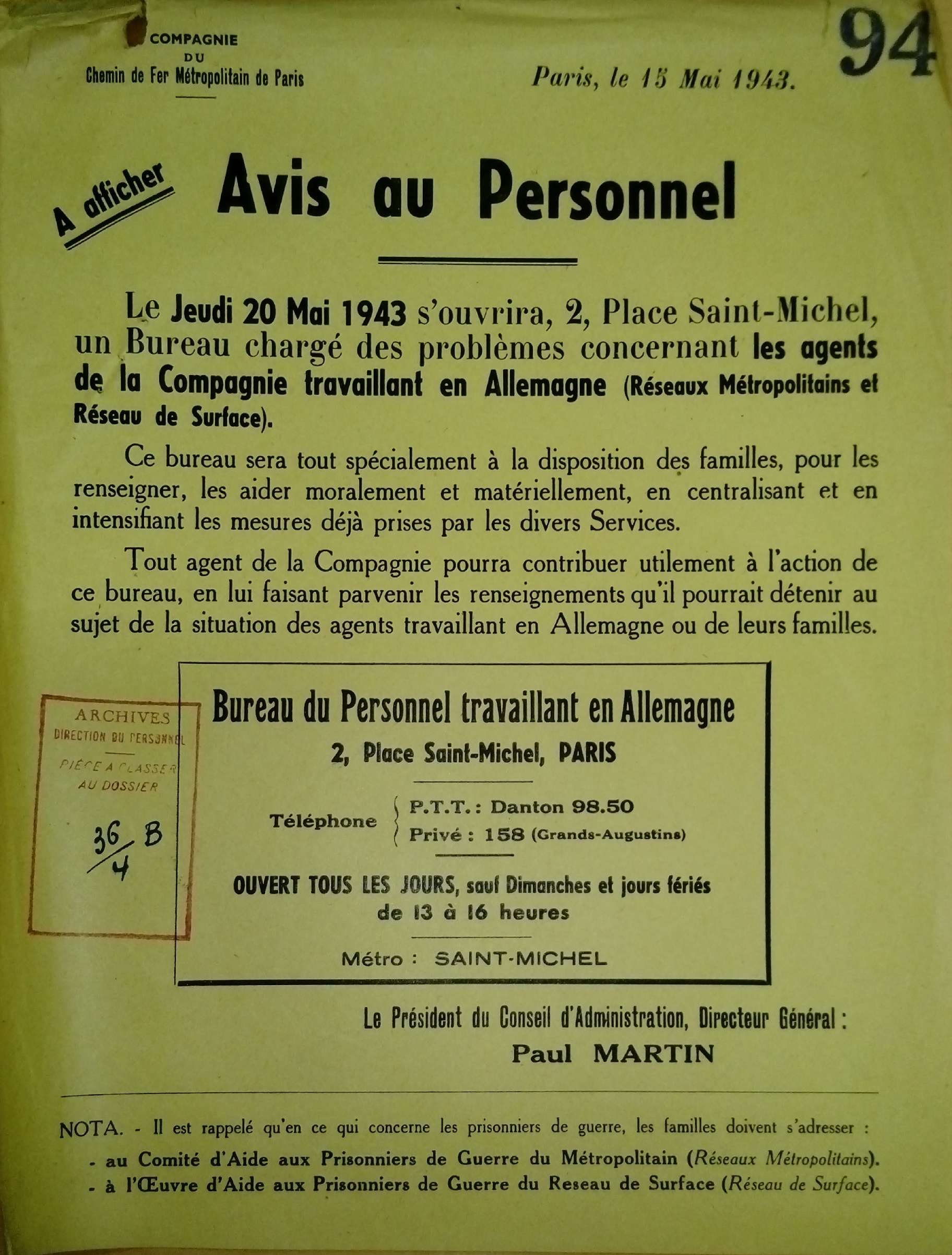 avis au Personnel.